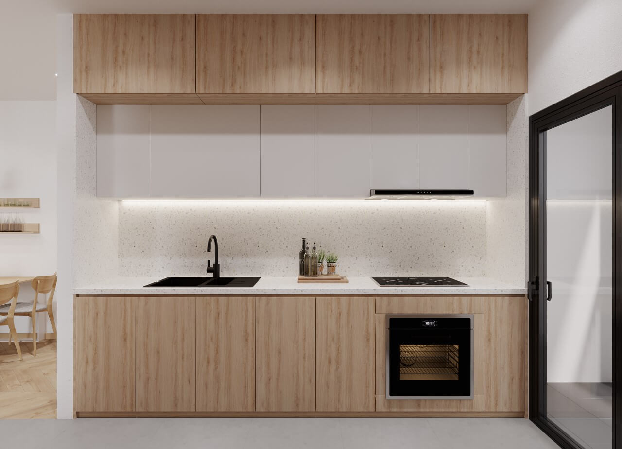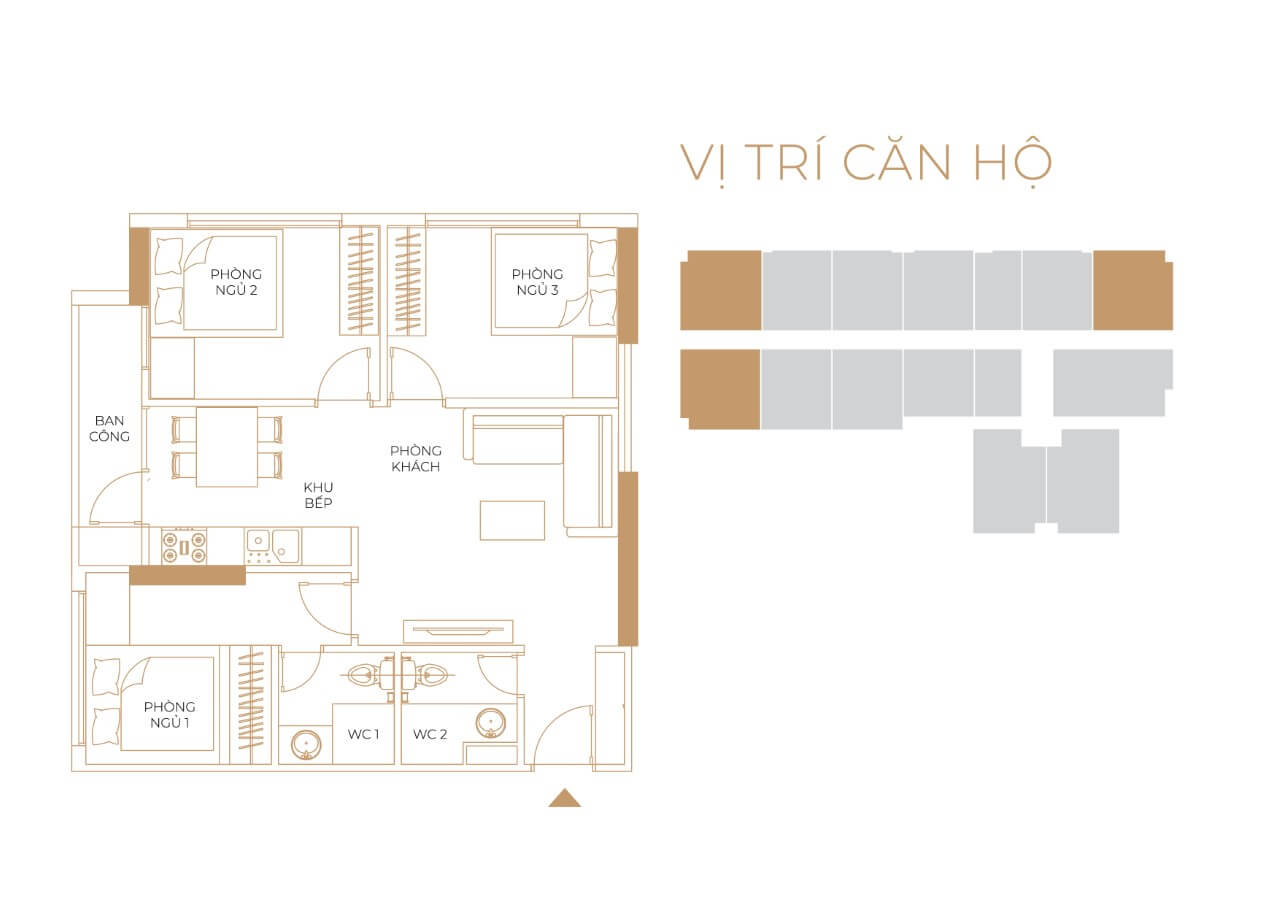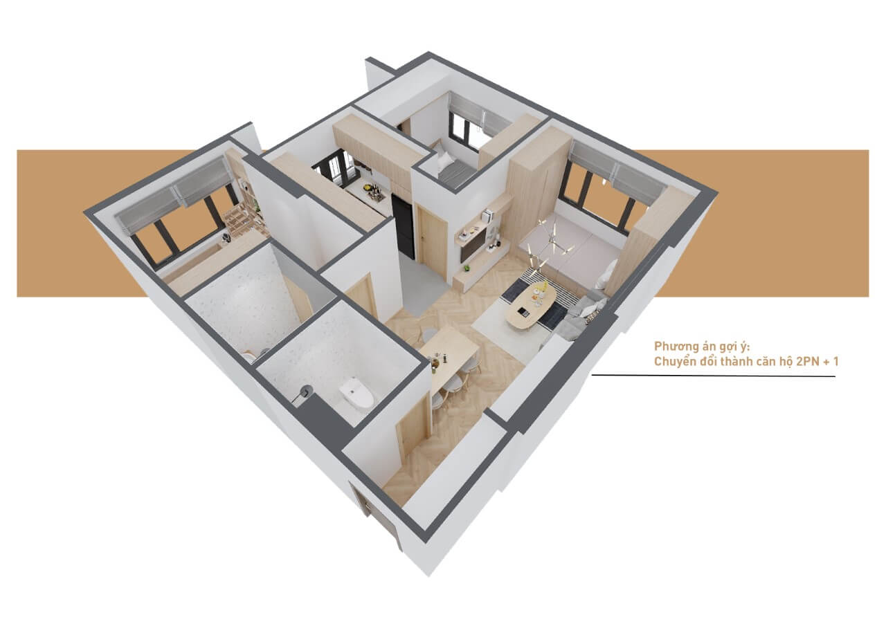 Các kiến trúc sư tài năng đã khéo léo bố trí căn hộ 69m2 tại vị trí góc với nhiều mặt thoáng mang tới tầm nhìn tươi trẻ, phóng khoáng được chia thành 3 phòng ngủ, 2 phòng vệ sinh, ban công kết nối với phòng bếp. Căn hộ cũng rất phù hợp để chuyển đổi thiết kế thành căn hộ 2PN + 1 ( mở rộng thêm không gian phòng khách và không gian chung )